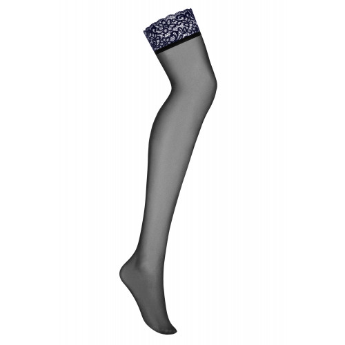 Decorate your sexy legs with a beautiful sheer stockings from Obsessive. Make your legs longer, sexier than ever with this dark blue stocking with delicate lace top. You will love how this luxurious stocking feels on the skin. Dark blue stocking for ladies with bigger curves.