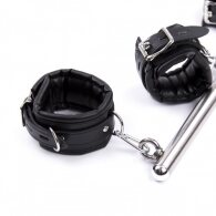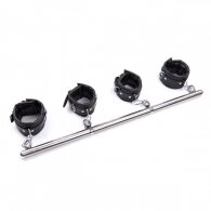 Φετιχιστική μεταλλική μπάρα με αποσπώμενα δερμάτινα ρυθμιζόμενα δεσμά καρπών και αστραγάλων Naughty Toys