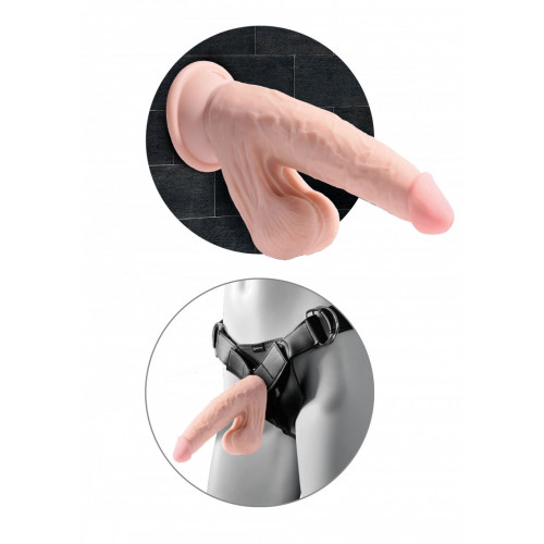 • Wide Base is Strap-On Harness Compatible: The suction cup also makes this King Cock Plus Triple Density dildo harness-compatible if desired.