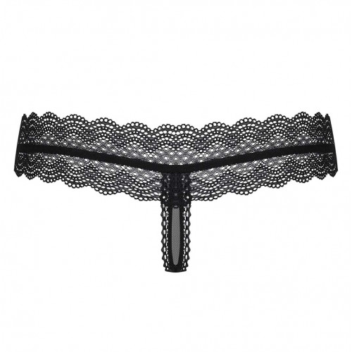 Super soft mesh thong with elastic lace hip strap. Comfortable sexy wear from Obsessive Lingerie Line.