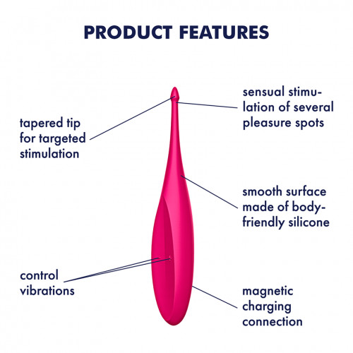 You have the choice between 12 vibration programs, which are composed of 5 intensities and 7 rhythms and can be controlled using the + and - buttons. Catapult yourself straight to cloud nine! The Satisfyer Twirling Fun is especially great for beginners thanks to its narrow, unyielding tip and ease of use.