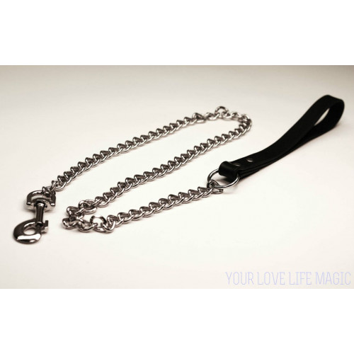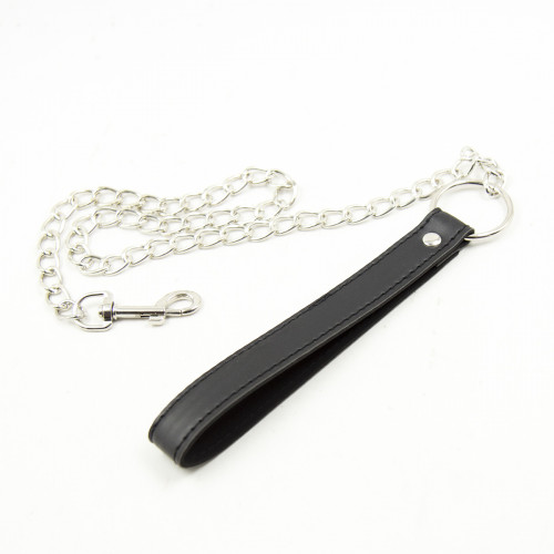 High quality Naughty Toys bdsm fetish metal chain Leash 65 cm with leather loop handle, to take your pet for a walk and or tell him -her to, "Sit and stay!"