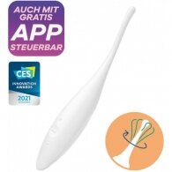 Buy wholesale or retail the New Pin Point couple's play sex toy vibrator Satisfyer Twirling Joy in WHITE colour. The Satisfyer Twirling Joy made of silicone stimulates all the erogenous zones, such as (for her) the clitoris, labia, Anus or even the nipples and (for him) Penis, testicles and Anus and all these with its circulating vibrations. The vibes can be controlled with 2 different ways a) via the control panel or b) the Satisfyer Connect app.