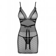 Extremely sexy chemise with a thong from Obsessive. Unique satin binding and a translucent dotted fabric. When you jump into the beautiful Bowessa and let yourself be wrapped in its delicate fabric, you will look sensual and sweet at the same time. This chemise has been created especially for you – it will emphasize your delightful shapes and make your loved one melt with delight! Do you feel like it already? Sure! You know very well that Bowessa is something you should definitely try out!