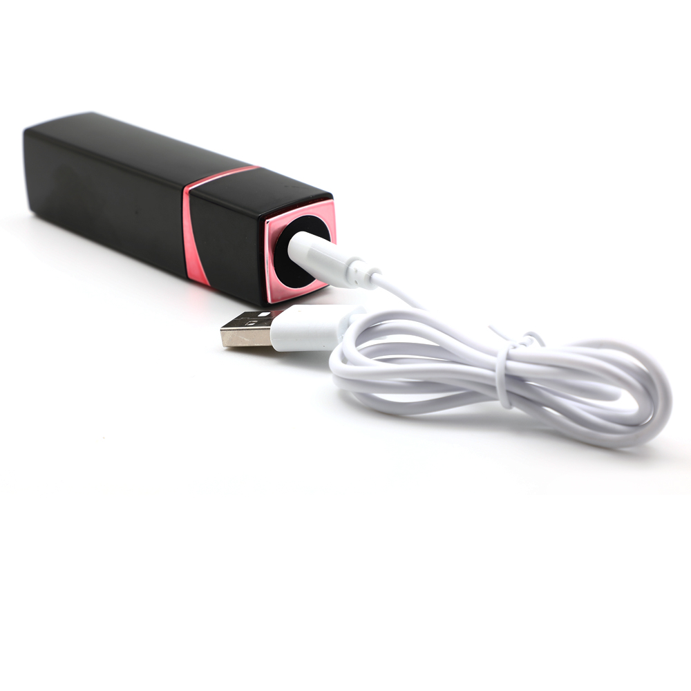 10 Speeds Black Color Rechargeable Silicone Vibrating Lipstick.