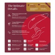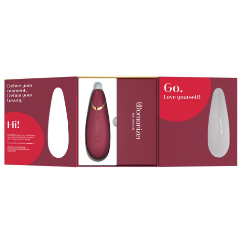 The new Premium in sexy red colour! The Womanizer Premium 2 is a powerful but whisper quiet pressure wave stimulator that pleasures a person with 14 (instead of 12) different intensities. The intensities can be easily adjusted with the (+/-) button. The patented Pleasure Air technology provides precise stimulation of the clitoris without getting in contact with it. It can also be used in the bath or the shower because it is waterproof. The new and improved autopilot function changes the intensities automatically which will make the pleasure even more surprising. The Womanizer Premium 2 only starts once it comes in contact with the skin thanks to the Smart Silence function. Until then, the Premium 2 is in an almost silent standby mode. The Womanizer Premium 2 automatically turns itself off when it’s not been used for 5-10 minutes (depending on the amount of battery it has left). ). This can be bypassed easily, e.g. by pressing one of the intensity levels/autopilot.