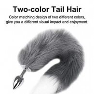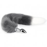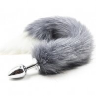 Μεγάλη (9 Χ Ø 4 cm) γκρί συνθετική oυρά με λευκό άκρο και με μεταλλική πρωκτική σφήνα για ατελείωτα παιχνίδια ερωτικών ρόλων όπως Καμαριέρα, Κουνελάκι, Άτακτη Αλεπουδίτσα, ο Κακός Λύκος... και πολλούς άλλους. Μεγάλου μεγέθους μεταλλική πρωκτική σφήνα για προχωρημένους (άντρες-γυναίκες) στον κόσμο της πίσω πόρτας. Οι φαντασιώσεις δίνουν χρώμα στην ερωτική σας ζωή. Κάντε το σέξ πιό παιχνιδιάρικο η αν θέλετε ... πιο κίνκι. Όμορφη ζεστή αισθησιακή πρωκτική σφήνα με ουρά για τους λάτρεις των ερωτικών ρόλων σε συνδυασμό με πρωκτικό παιχνίδι... και οχι μόνο. Συνδυάστε μόνο με λιπαντικά νερού - οτιδήποτε αλλο μπορεί να προκαλέσει ζημειά στο προιόν.