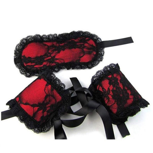 - Μαλακές χειροπέδες χεριών με ντελικάτη φλοράλ δαντέλα και σατέν λουριά για δέσιμο