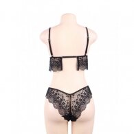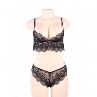 Black lingerie set for sophisticated seduction for ladies. The black bra is coming with matching briefs. The unpadded bra, thanks to the adjustable straps fits perfectly on your breast.