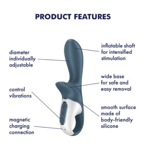 Ο δονητής έχει μια φαρδιά βάση στον άξονα, η οποία διεγείρει επιπλέον τον πρωκτό σας με δονήσεις. Ο άξονας σε σχήμα σταγόνας εξασφαλίζει αίσθηση γεμίσματος και έντονη διέγερση ακόμη και πριν το φούσκωμα, η οποία μπορεί να ενταθεί αυξάνοντας την πίεση. Κατασκευασμένος από απαλή, φιλική προς το δέρμα σιλικόνη, ο δονητής πρωκτού μπορεί εύκολα να εισαχθεί και έχει σταθερό κράτημα χάρη στον πρακτικό δακτύλιο συγκράτησης. Συνδυάστε τον με ένα λιπαντικό από τη μεγάλη γκάμα των προϊόντων μας για να δημιουργήσετε μια ακόμα πιο τέλεια εμπειρία. Στη συνέχεια, μπορείτε να το καθαρίσετε με ένα υγρό πανί και κάποιο καθαριστικό παιχνιδιών και να το επαναφορτίσετε μέσω του μαγνητικού καλωδίου φόρτισης USB.