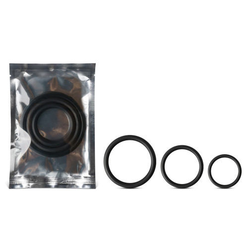 Black colour silicone triple cock ring set. Cock rings give you the support you need to have a bigger, stronger erection. Yes, they can hold your cock up and running for hours. Give yourself a bigger more powerful erection. They can seriously prolong ejaculation too.