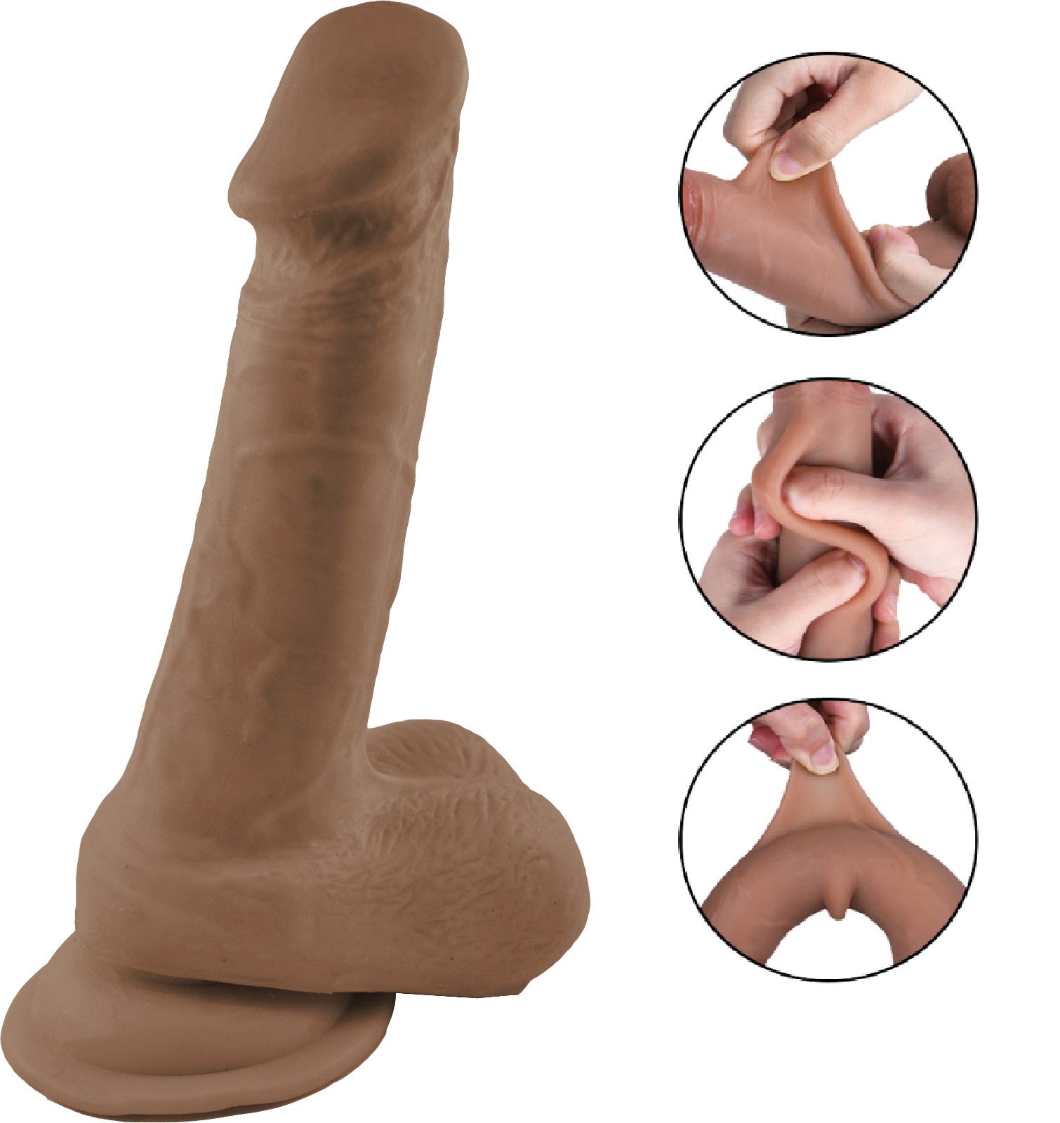 Dildo Tom Sliding&Bendable, TPE Strat Dublu, Caramel, 19 cm, Pas (ES29911)
