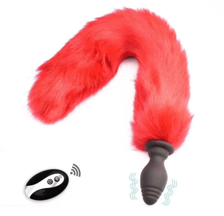 Αρχική Σελίδα Dop Anal cu Coada,10 Moduri Vibratii, Remote Control, Rosu, Sili