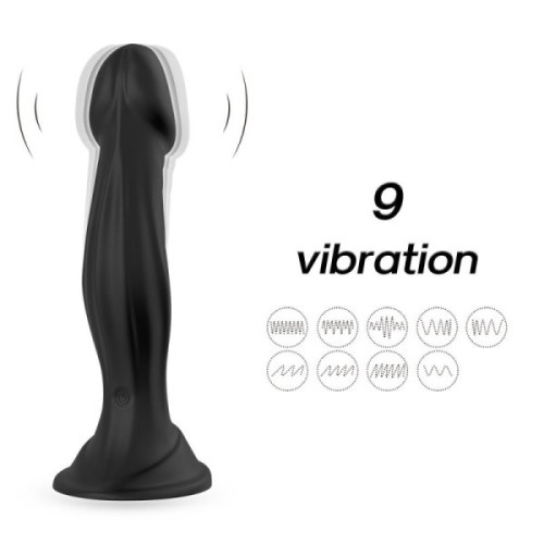 Black Rufus is a wireless remote controlled black silicone phallic shape dildo with suction base. Magnetically usb charging. Waterproof. High quality silicone with soft feel and touch. Ideal for strap-on play.