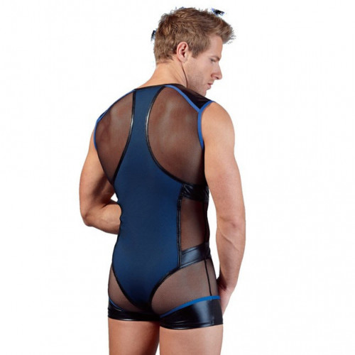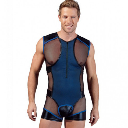 Fashionable powernet body with wetlook and microfibre inserts from Sevnjoyment Underwear.