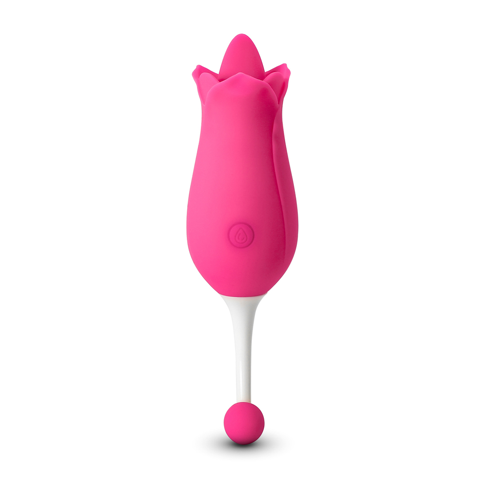 7-Function Red Color Silicone Rose Massager with Tongue.