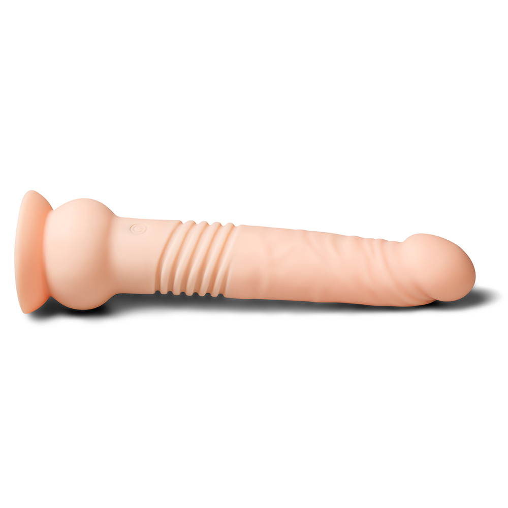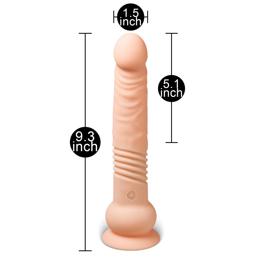 Flesh Color 10 Functions Remote Control Silicone Rechargeable Vibrating and Thrusting Dildo, with one-key burst for maximum enjoyment, skin safe, Phthalates and Latex Free.
