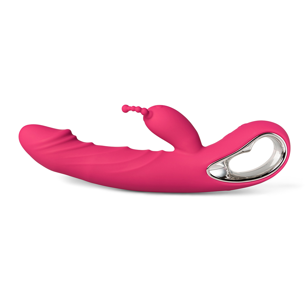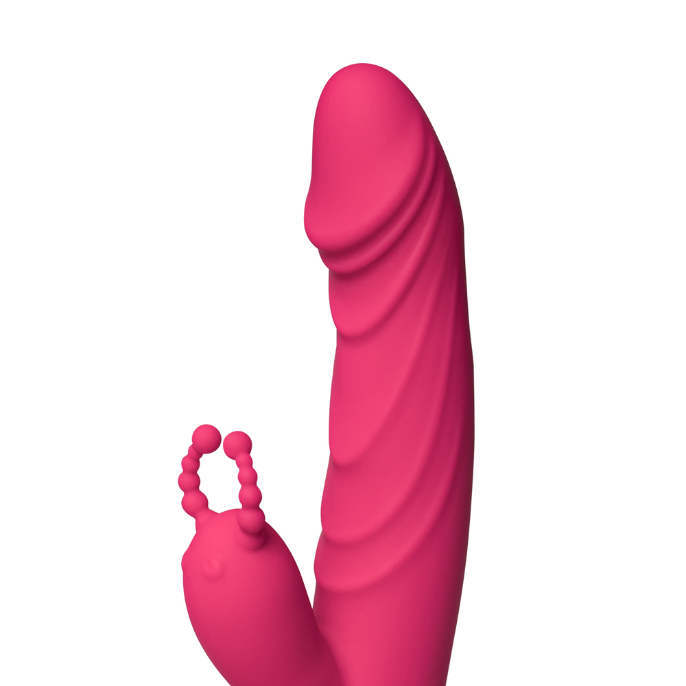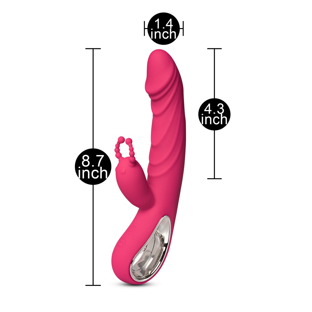 12-Speed Red Color Silicone Rabbit Vibrator with Wiggling Function.