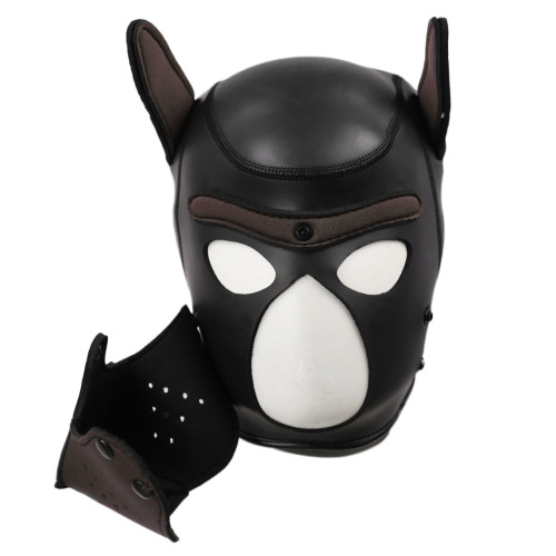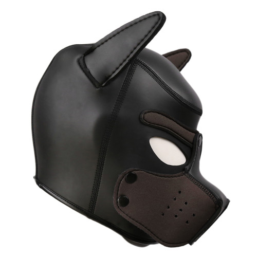 Bdsm fetish animal role play large size Bondage bitch, dog, puppy neoprene head hood by NAUGHTY TOYS. Ideal for men´s heads! Lightweighted, dog head mask made of soft neoprene with a velvety surface. Hood has got a detachable muzzle mouth part. A perfect enclosing fit.