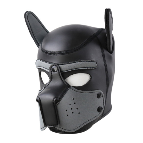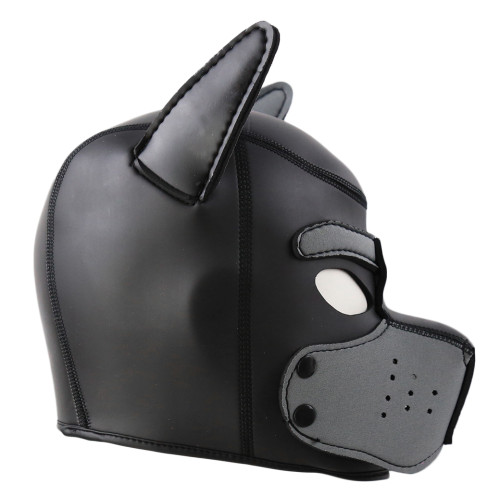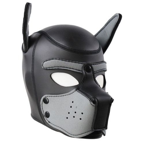 Bdsm fetish animal role play large size Bondage bitch, dog, puppy neoprene head hood by NAUGHTY TOYS. Ideal for men´s heads! Lightweighted, dog head mask made of soft neoprene with a velvety surface. Hood has got a detachable muzzle mouth part. A perfect enclosing fit.