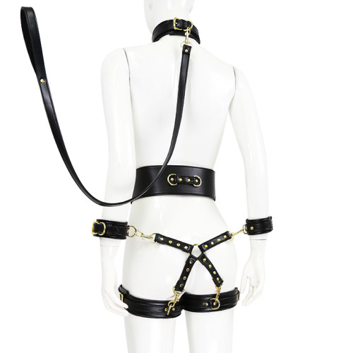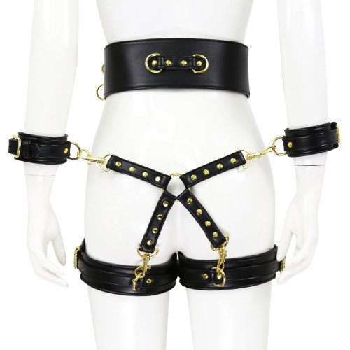 Take your play times to the next level with this superv bondage restraints set of 6 pieces made of premium quality PU leather. This Premium bondage collection bdsm set comes with an exclusive design of a double waist corset, ankle cuffs, wrist cuffs, thigh cuffs, hog tie, neck collar with matching a leash. Amazing quality, amazing color combination, amazing set. It will take your fetish play times to the next level.