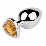Μεγάλου μεγέθους, πανάλαφρη μεταλλική πρωκτική σφήνα NAUGHTY TOYS, 9 X Ø 4 εκ, για προχωρημένα κορίτσια και αγόρια, επενδυμένο με ΦΑΝΤΑΧΤΕΡΟ βαθύ κίτρινο διαμαντάκι διακόσμηση στήν τάπα, με σχήμα καρδιάς. Πρωκτικό κόσμημα το οποίο θα δώσει χρώμα και λάμψη στον πωπό. Κάνε το ερωτικό σου παιχνίδι ακόμη πιο κινκι.