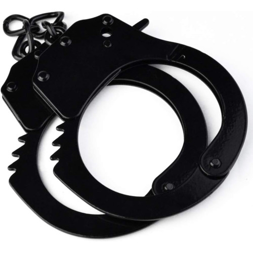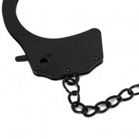 Tough, strong, black pladed zink alloy metal handcuffs made for intermediate to advanced bondage enthusiasts. Ideal for those who love Police role bondage play. Semi-heavy duty hand cuffs to keep you in control over your submissive, by NAUGHTY TOYS. Heavy (296 gr) black plated BDSM handcuffs. So, if you want to be more into the bdsm game, you can simply remove the furry and turn this magnificent cuffs into a police handcuffs. Unisex and One size fully adjustable - adjusts exactly to the point and as tight, you want it to be. Offered with two keys (included).