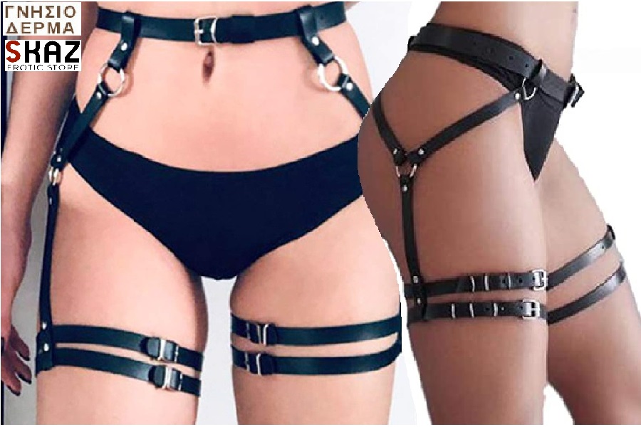 Κατασκευάζετε στην Ελλαδα, χειροποιητο, από ΓΝΗΣΙΟ δέρμα και υλικά άριστης ποιότητος και αντοχής. Εξαιρετικές δερμάτινες ζαρτιέρες με ζώνη φάρδους 3εκ, διχαλωτό κατέβασμα και διπλό δέσιμο στούς μηρούς με λουράκια φάρδους 1,5εκ. Ομορφαίνει τα πόδια με μιά άγρια ομορφιά και σας οδηγεί σε νέες ερωτικές διαδρομές. Ανανεώστε τη σεξουαλική ζωή σας και τολμήστε σε νέα αποφασιστικά ερωτικά ταξίδια.