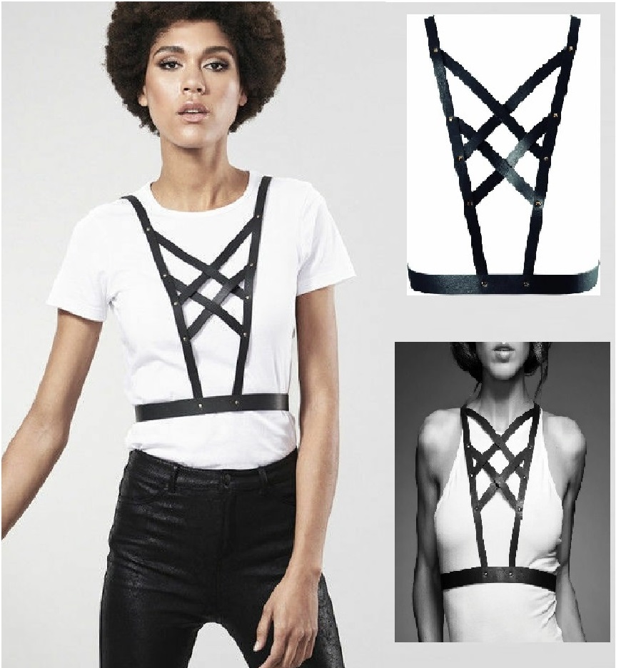Κατασκευάζετε στην Ελλαδα, χειροποιητο, από ΓΝΗΣΙΟ δέρμα και υλικά άριστης ποιότητος και αντοχής. Αξεσουάρ στο στήθος με 2 ''τιράντες'' και διπλά χιαστή λουράκια φάρδους 1,6 εκ. Αναβαθμίζει και ανανεώνει το Fetish extreme στυλ στο ντύσιμό σας. Δίνει μιά άλλη νότα ακόμα και στο πιό απλό ρούχο που θα φορέσετε.