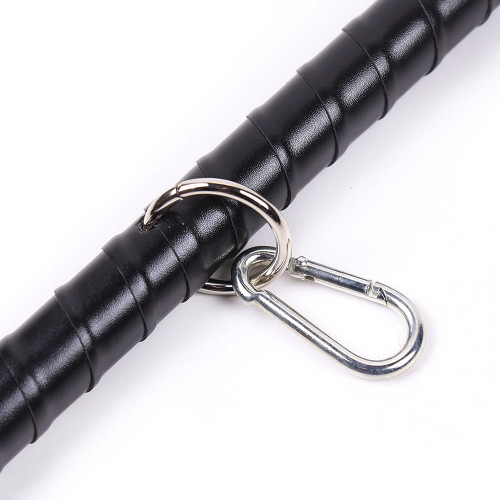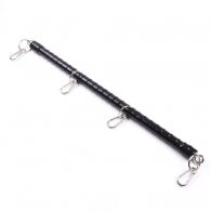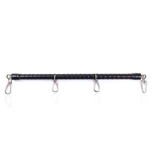 Sturdy metal spreader bar with four mounting points with carabiners. The metal spreader bar is wrapped with PU leather. Use them with your favorite cuffs. Try all the positions and let your imagination do the work. The spreader bar is strong enough to restrain a struggling subject.