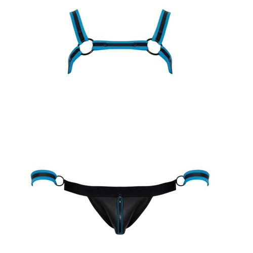 Ζήστε την απόλυτη κομψότητα σε δεσμά με το Σετ δεσμών Svenjoyment BONDAGE, το οποίο περιλαμβάνει Ζώνη Στήθους, εσώρουχο και χειροπέδες. Αυτό το συναρπαστικό σύνολο διαθέτει υπερπολυτελή εμφάνιση από νεοπρένιο σε κομψό μαύρο με εντυπωσιακές λεπτομέρειες σε μπλε χρώμα. Σχεδιασμένο για ευκολία στην χρήση, η ζώνη στήθους ασφαλίζει εύκολα με κουμπιά πίεσης, επιτρέποντας γρήγορο φόρεμα και αφαίρεση. Το εσώρουχο διαθέτει φερμουάρ στο μπροστινό μέρος και αποκαλυπτικά ανοιχτό πίσω μέρος τα οποία το καθιστούν ιδανικό για τολμηρό παιχνίδι. Ολοκληρώνοντας το σετ, η ζώνη περιλαμβάνει δαχτυλίδια σε κάθε πλευρά για να συνδέονται οι ρυθμιζόμενες χειροπέδες, εξασφαλίζοντας μια ασφαλή και συναρπαστική εμπειρία. Αφεθείτε στη γοητεία αυτού του εκλεπτυσμένου σετ δεσμών και αναβαθμίστε τις προσωπικές σας στιγμές.