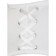 Sensual white satin/lace lingerie set for the first wedding night and the honeymoon or just a passionate evening with your loved one.Satin padded bra with lace insert and shiny rhinestone decoration with adjustable straps and hook fastener at the back. The shelf bra leaves your breasts exposed for maximum temptation. Matching floral lace string with open crotch area so you can continue your evening without interruption with the crotchless thong. Thanks to the suspender belt you can add your favourite stocking to your evening wear. satin suspender belt with lace insert and lacing on the sides and the front and 4 adjustable suspender belts.