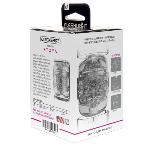 Discover the Quickshot Stoya from Fleshlight, a compact and easy-to-use masturbator designed for ultimate pleasure. Encased in a sleek, transparent case with a protective lid, this stroker is perfect for enhancing solo sessions or shared intimacy.