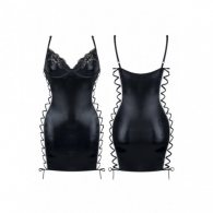 Attractive wetlook mini dress from Demoniq Lingerie Line with sexy lacing on the sides.