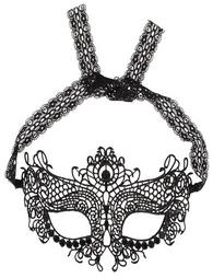 Όμορφη μάσκα από λεπτό περίπλοκο κέντημα. Με τρύπες στα μάτια. Η κορδέλα από δαντέλα δένεται στο πίσω μέρος του κεφαλιού.