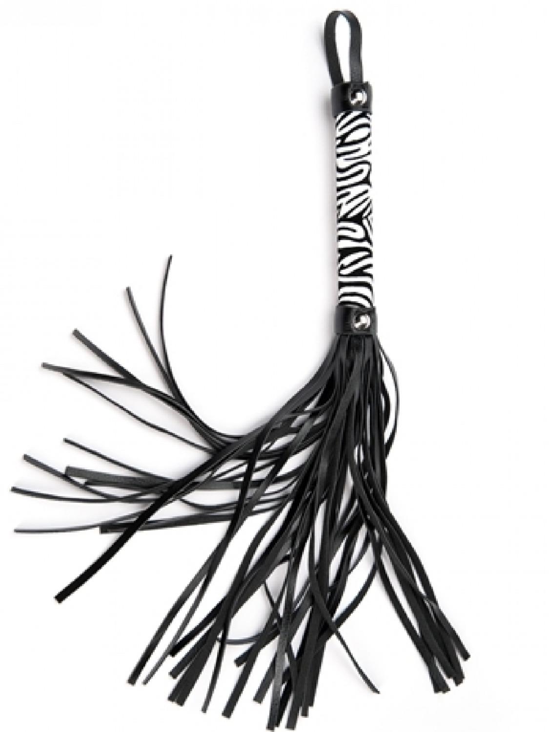 Κλασικό μαστίγωμα από δέρμα PU, ξύλο και μέταλλο χωρίς νικέλιο με λευκό πάνθηρα. Η λαβή είναι σχεδιασμένη για τέλειο κράτημα και είναι πολύ ανθεκτική. Στη λαβή, το μαύρο print είναι βελούδινο στην αφή, ενώ το λευκό μέρος είναι γυαλιστερό. Διαθέτει δερμάτινο δαχτυλίδι στο επάνω μέρος για αποθήκευση και εμφάνιση στόχων. Η διάμετρος του κουτιού είναι 25x8x4 εκ.