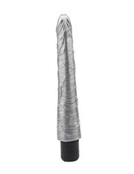 Ένας ρεαλιστικός δονητής σε ασήμι. Διαθέτει έντονο κεφάλι, με ανάγλυφες φλέβες για επιπλέον τόνωση. Ευχάριστο στην αφή, χωρίς ραφές. Ρύθμιση κραδασμών με τροχό στη βάση. Εξοπλισμένο με δόνηση μεταβλητής ταχύτητας, τροφοδοτείται από δύο μπαταρίες AA (δεν περιλαμβάνονται).
