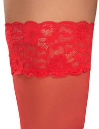 Κόκκινες κάλτσες με όμορφες δαντέλες πλάτους 9 cm από την Cottelli LEGWARE. Ενίσχυση σιλικόνης στο εσωτερικό για αντιολισθητική εφαρμογή και βέλτιστο κράτημα. Βάρος νήματος 20 den. Πιστοποίηση Oeko-Tex.