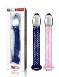 Ελαφρώς καμπυλωτό dildo κατασκευασμένο από υψηλής ποιότητας διαφανές γυαλί με διεγερτική ροζ σπείρα στον άξονα.