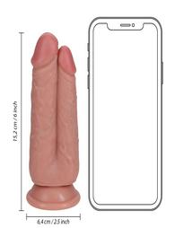 Shots RealRock Διπλό Dildo με Όρχεις και Βεντούζα Flesh 15cm (8714273505439)