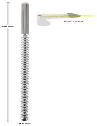 ...σε σχήμα πειραχτικής μπάλας με στρογγυλεμένο άκρο, λεία λαβή και μύτη για εύκολη εισαγωγή. Παράγεται χωρίς ραφή. Συνολικό μήκος περίπου 24 cm. Ράβδος εισαγωγής μήκους 17,5 cm. διάμετρος περίπου 6 mm. Υλικό: Ανοξείδωτο ατσάλι.