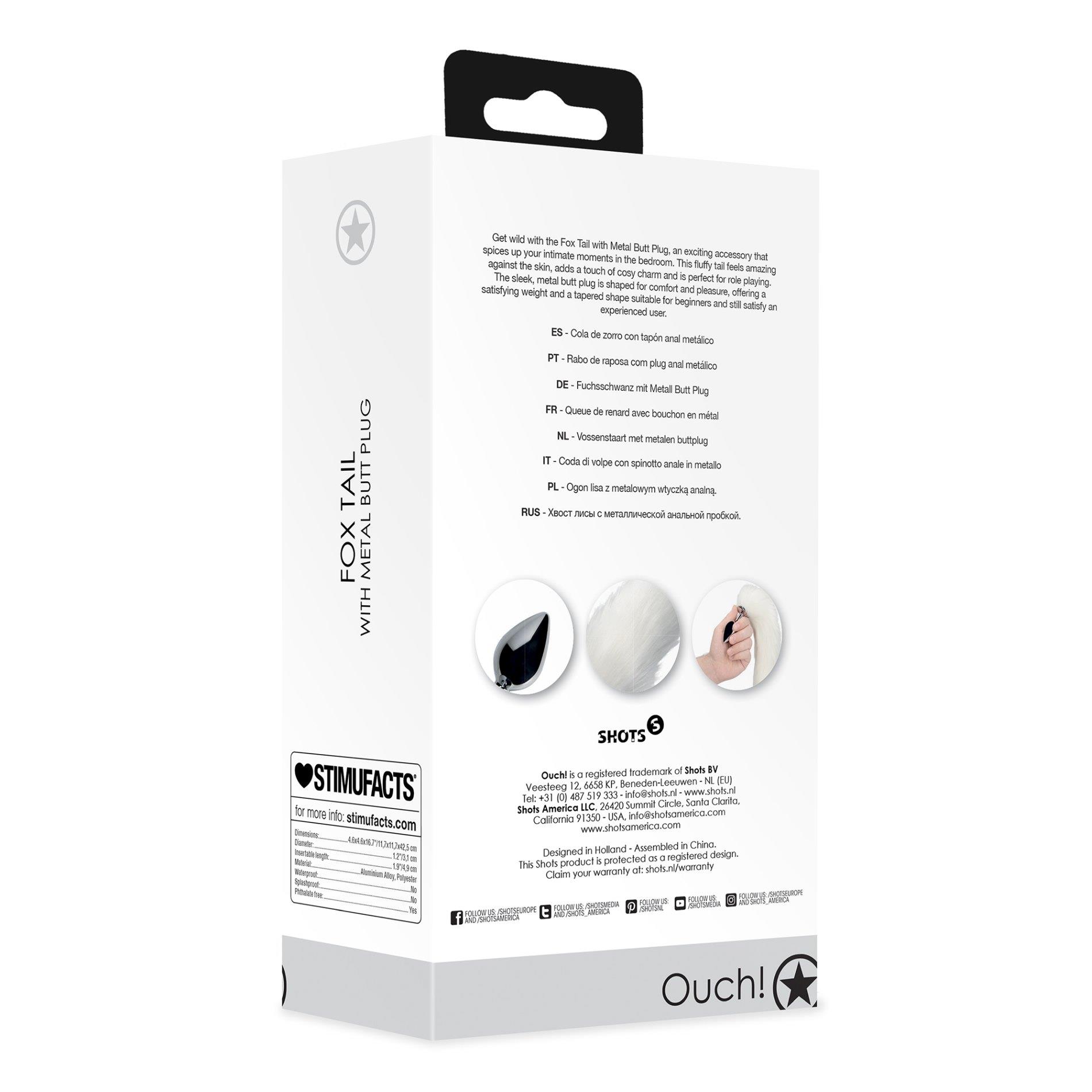 Αφήστε τον εαυτό σας να είναι άγριος με το Fox Tail with Metal Anal Plug, ένα συναρπαστικό αξεσουάρ που θα ωραιοποιήσει τις προσωπικές σας στιγμές στην κρεβατοκάμαρα. Η χνουδωτή ουρά έχει υπέροχη αίσθηση στο δέρμα, προσθέτει μια ζεστή γοητεία και είναι ιδανική για παιχνίδι ρόλων. Το κομψό μεταλλικό πρωκτικό βύσμα έχει σχεδιαστεί με γνώμονα την άνεση και την ευχαρίστηση, προσφέροντας ένα ικανοποιητικό βάρος και ένα κωνικό σχήμα που ταιριάζει τόσο σε αρχάριους όσο και σε έμπειρους χρήστες.