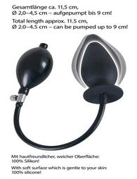 Αυτό το μαύρο πισινό βύσμα μπορεί να αντληθεί παχύ και διογκωμένο με μια εύχρηστη σφαιρική αντλία με βαλβίδα απελευθέρωσης: Πιέστε τον προστάτη για να σας διεγείρει και την ουροδόχο κύστη για τον οργασμό σας. Μήκος 11,5 cm, διάμετρος 2 έως 4,5 cm - φουσκωτό - επεκτείνεται στα 9 cm σε διάμετρο! Υλικό: σιλικόνη.
