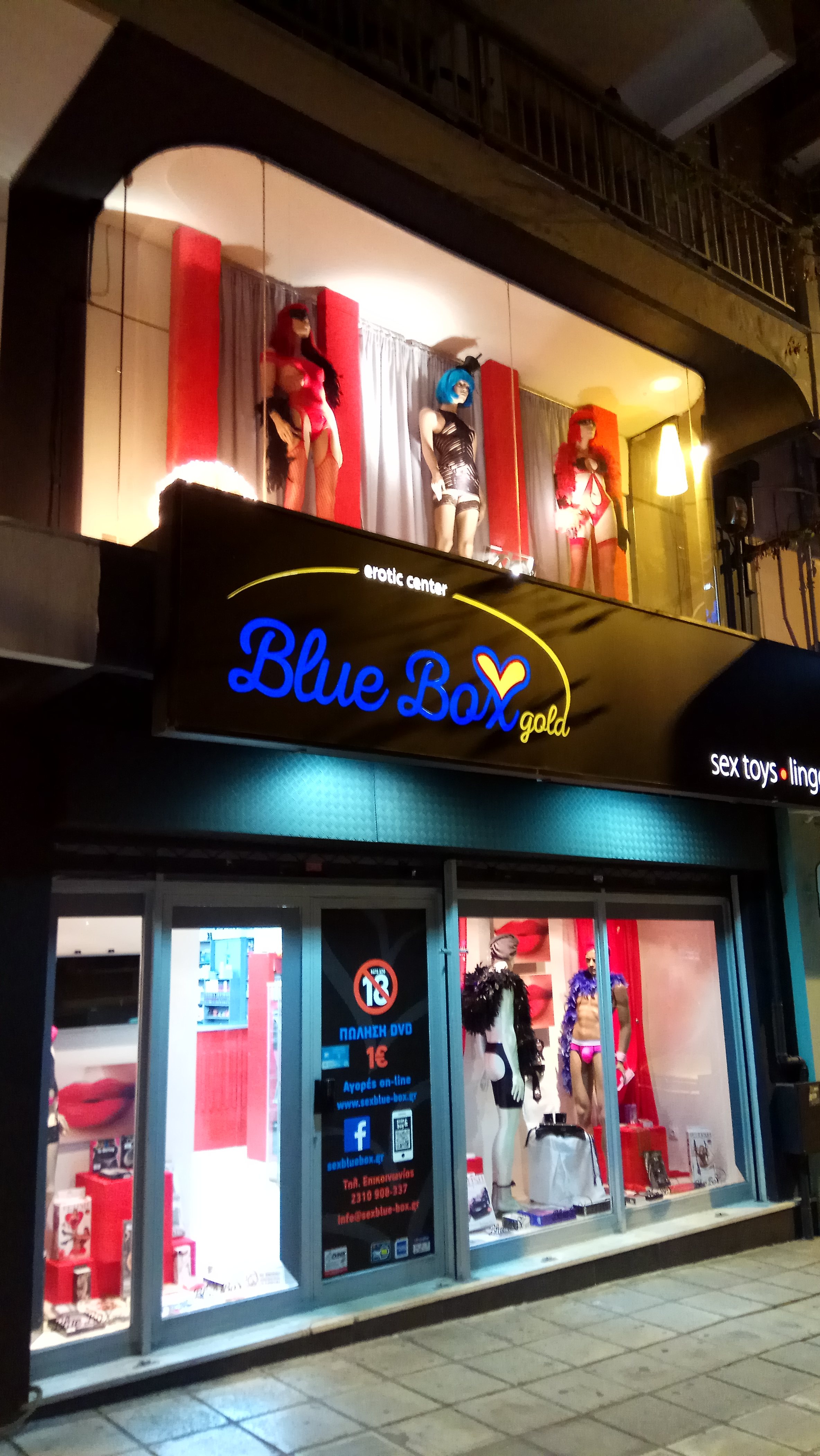 Το κατάστημα BLUE BOX είναι ένα από τα μεγαλύτερα sex shop στην Θεσσαλονίκη. Δεν είναι τυχαίο πως μπορείτε να βρείτε ΑΜΕΣΑ (υπάρχουν στο κατάστημα) ότι κυκλοφορεί από SEX DVD, είδη sex shop όπως ανδρικά ομοιώματα και δονητές, κούκλες για άνδρες και γυναίκες, sexy εσώρουχα όπως κιλοτάκια, string, ζαρτιέρες και πολλά άλλα που θα σας διεγείρουν και θα σας πείσουν ότι πέρα από τον τεράστιο αυτό κόσμο ηδονής και φαντασιώσεων, υπάρχει μία άψογη εξυπηρέτηση και προπαντός εχεμύθεια.